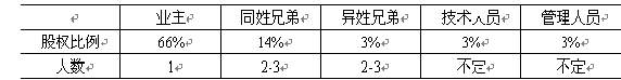 根据以上典型调查分析可以看出,家族成员持有的股份已经占到私营企业股份的83%,充分体现了家族控股的特征。在我们提供咨询服务的一些家族企业当中,有的家族股份或业主个人股份甚至超过了95%。从上表还可以看出,家族企业的股权结构中,除企业主及其家族所占有股份的大部分外,技术人员、管理人员也占有一部份股份。这是企业主为了适应企业规模的扩大和经营范围的扩展及专业化管理,在企业股权结构方面采取的措施,对一些有能力的技术人员和管理人员给予股份赠与,使他们拥有企业的一部分股权,以留住人才。这也说明,家族企业已经开始认识到,要使企业长寿和可持续发展,过于集中的股权结构需要逐步进行社会化改革。